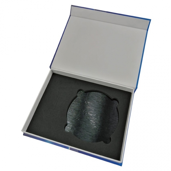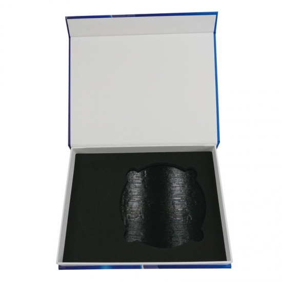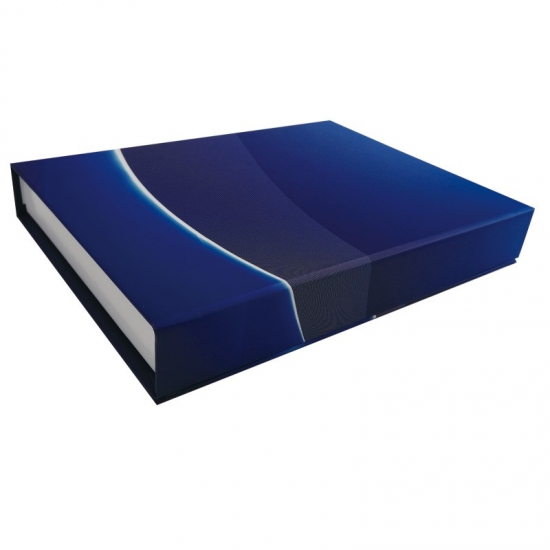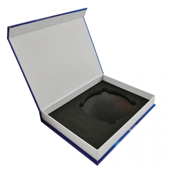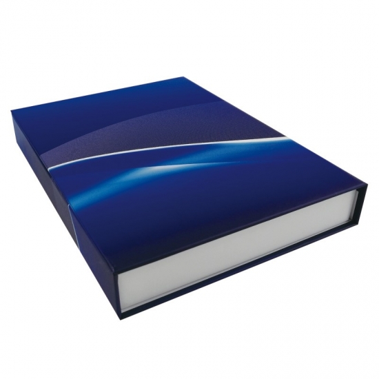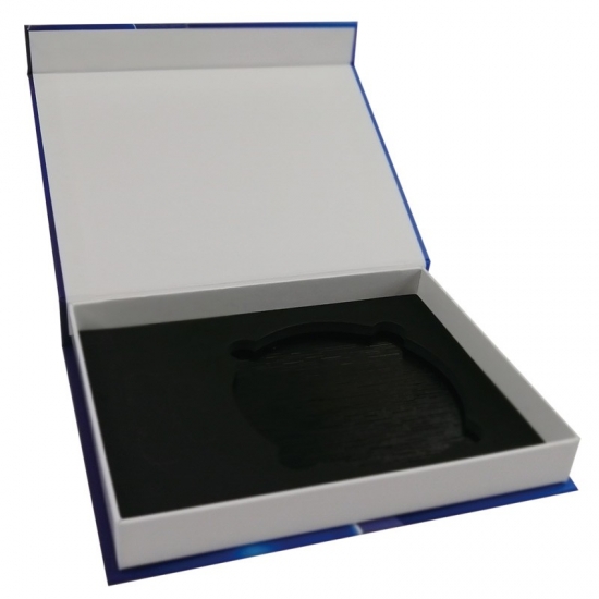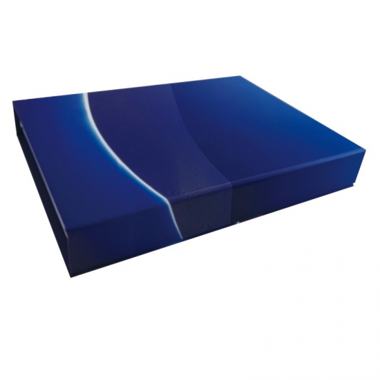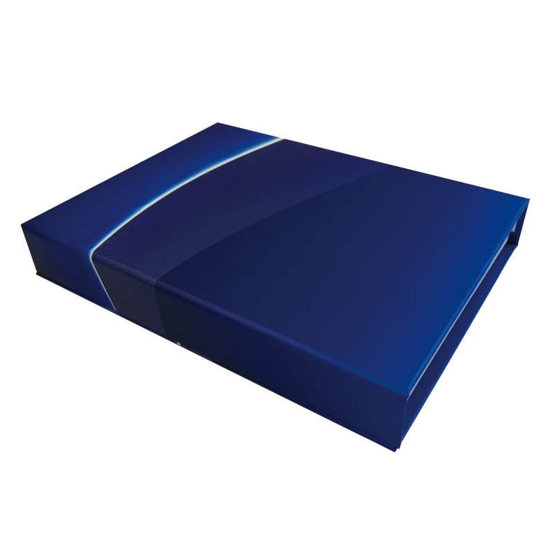 C'est un boîte à souvenirs pour bébé avec fermeture magnétique qui a fait par papier d'art C2S 157g + carton gris 2mm, à l'extérieur de la boîte pleine d'impression couleur bleu dégradé, à l'intérieur de la boîte blanc uni et l'EVA qui peut être de forme personnalisée selon votre demande.