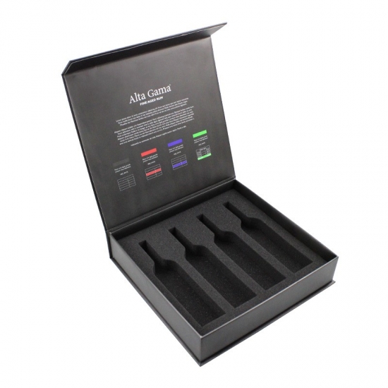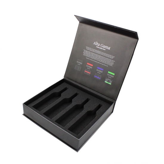 C'est un boîte de rangement avec fermeture magnétique qui a fait par papier d'art C2S 157g + carton gris 2mm, revêtement UV du logo sur le couvercle supérieur, à l'intérieur de la boîte, imprimez le texte des coordonnées et l'éponge qui peut être façonnée sur mesure en conséquence.
