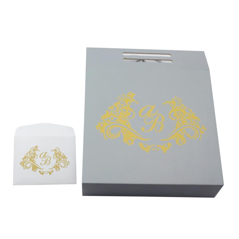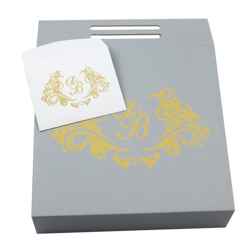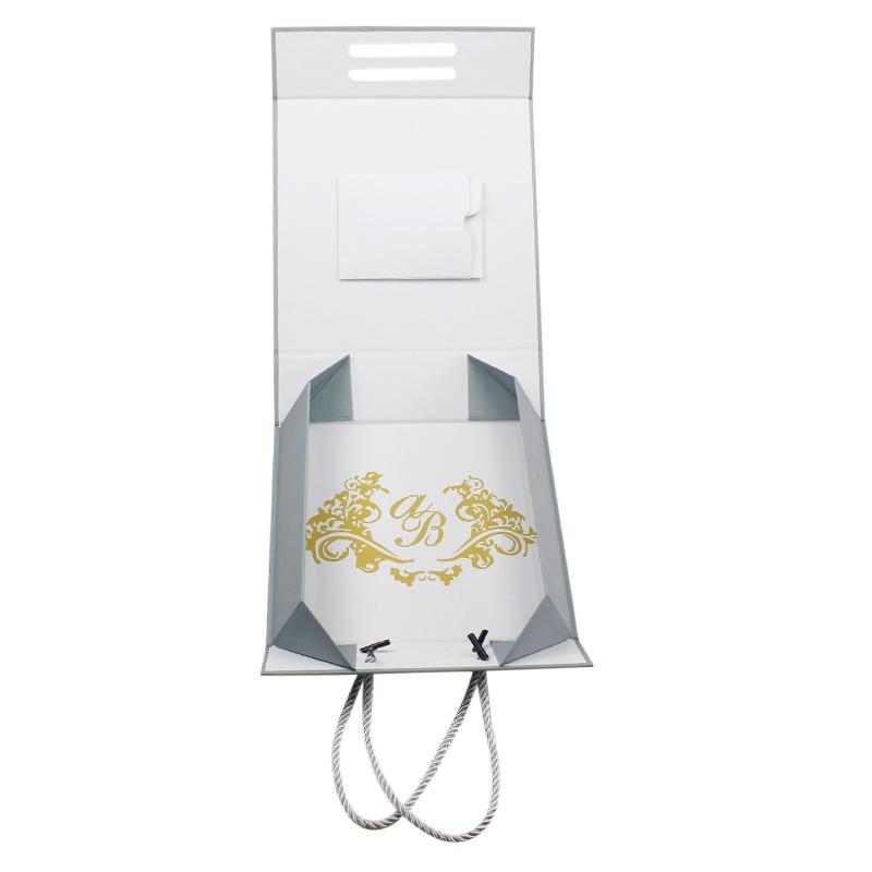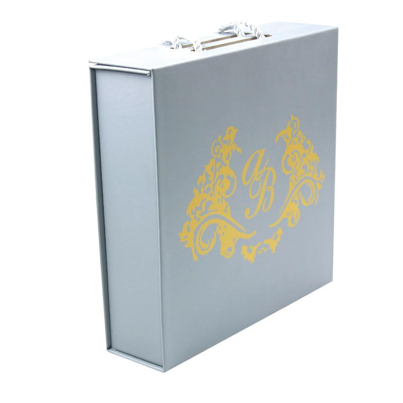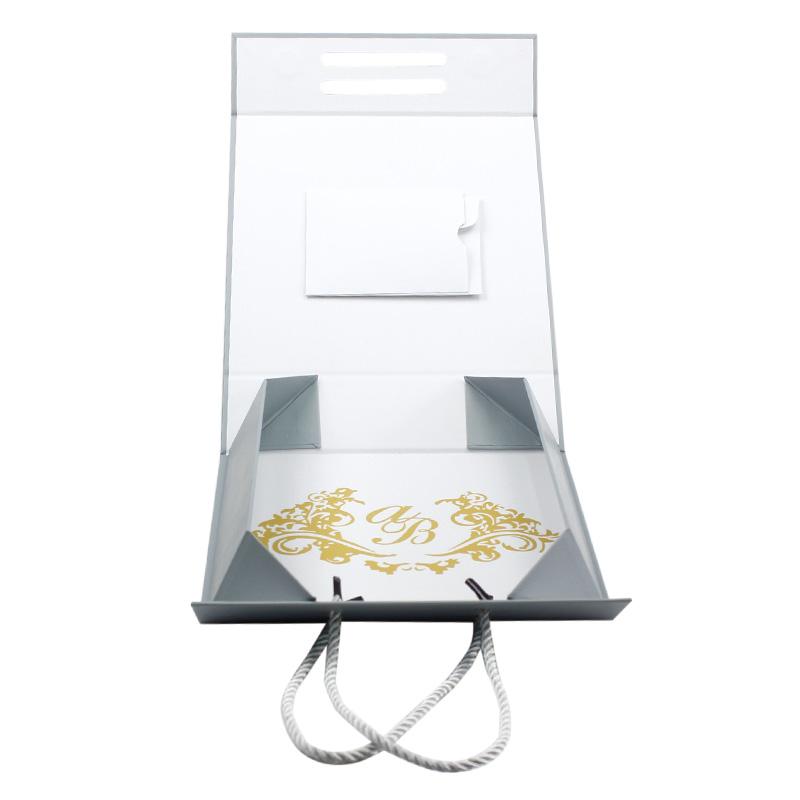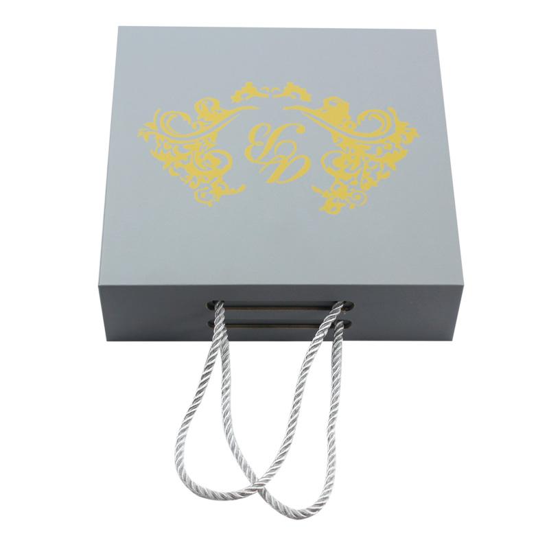 C'est un boîtes en carton à plat avec une poignée, coffret cadeau au design très personnalisé facile à transporter