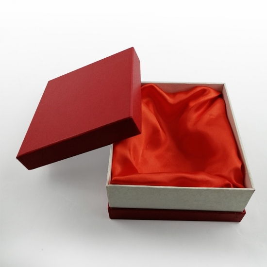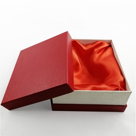 Coffret cadeau carré rouge personnalisé avec couvercles, le rembourrage à l'intérieur peut être en tissu satiné rouge pour correspondre à la couleur extérieure de la boîte.