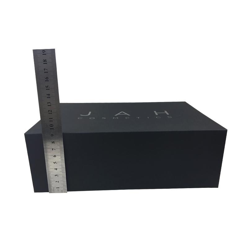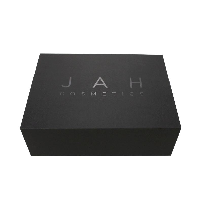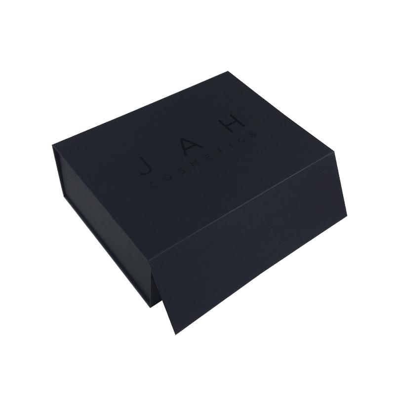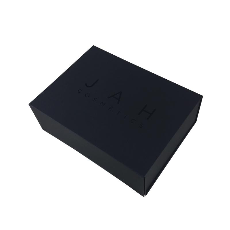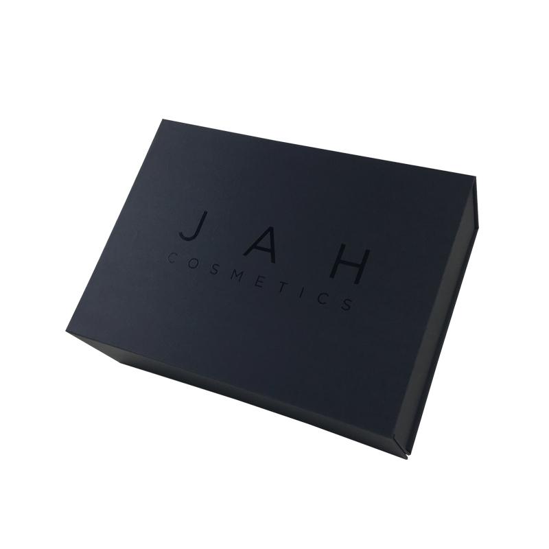 Il s'agit d'une boîte cadeau d'emballage pliable avec couvercle à rabat qui a fait en papier noir + carton gris 1200g, ce sont des boîtes pliantes en carton noir avec fermeture magnétique, le logo sur le dessus du couvercle est recouvert d'un revêtement UV.