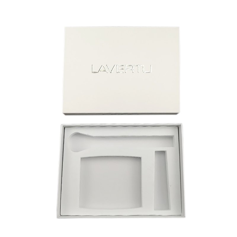 La structure est composée de deux parties : la boîte extérieure et la boîte intérieure. La boîte extérieure peut être personnalisée avec votre logo, tandis que la boîte intérieure peut être garnie de velours, de mousse PE ou de mousse spongieuse.