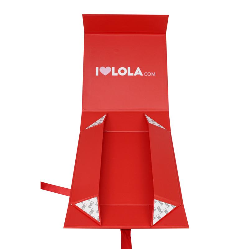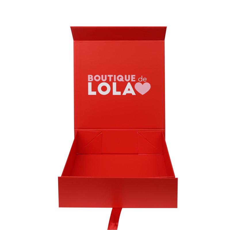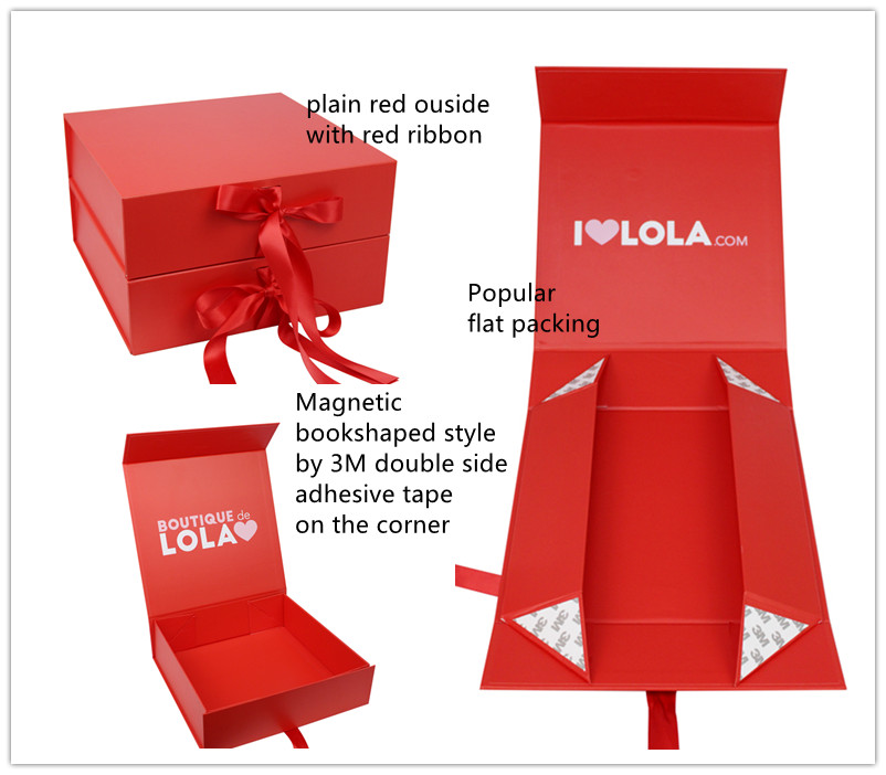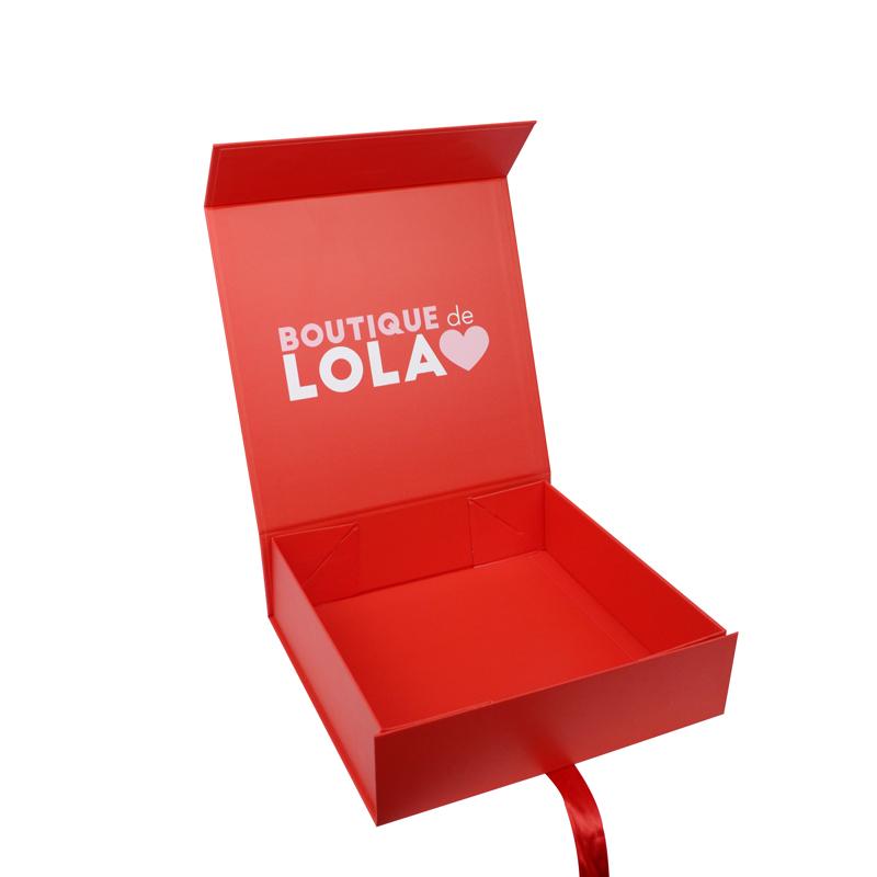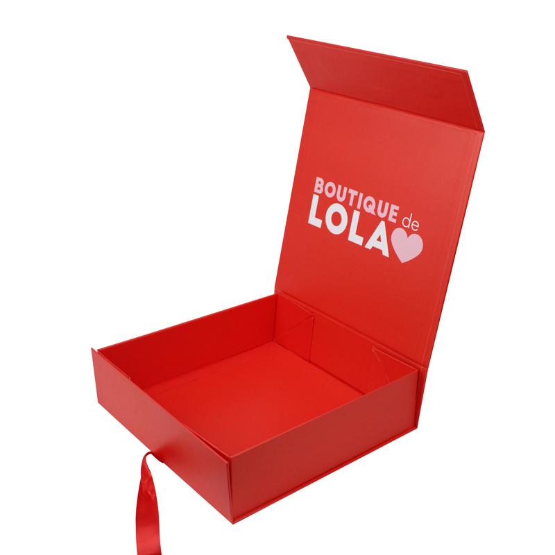 Boîte en papier pliable en forme de livre avec ruban magnétique rouge imprimé personnalisé