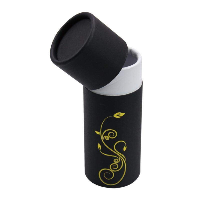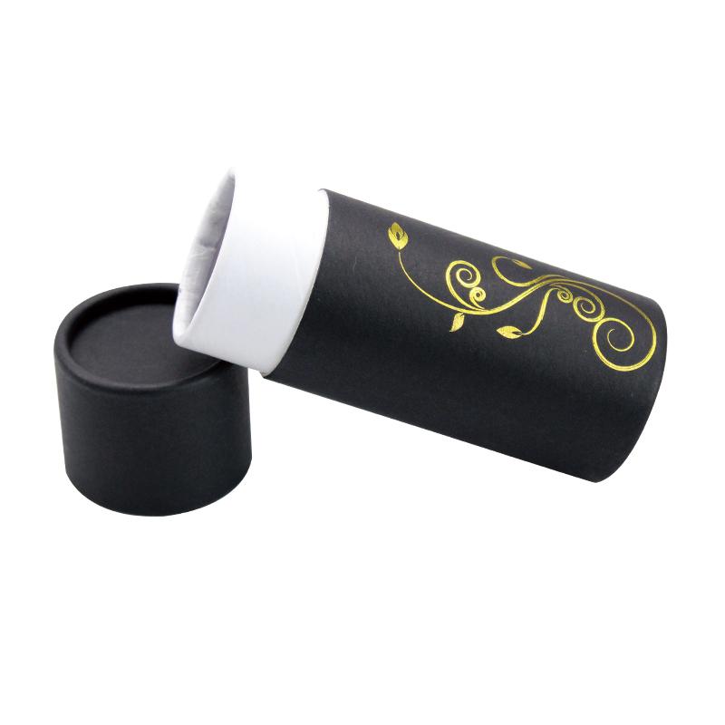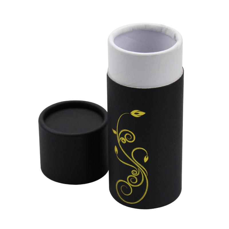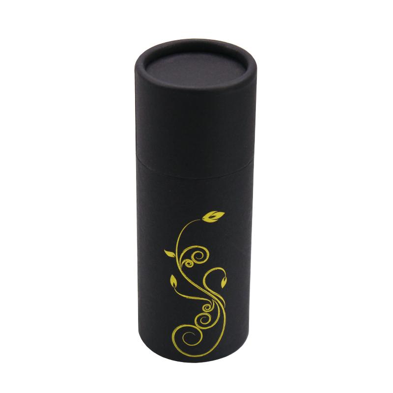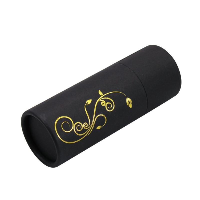Il s'agit d'une petite boîte cylindrique noire à bords tournés avec couvercle et motif floral en feuille d'or. par papier d'art C2S 157g + carton gris 1200g.