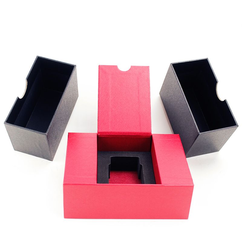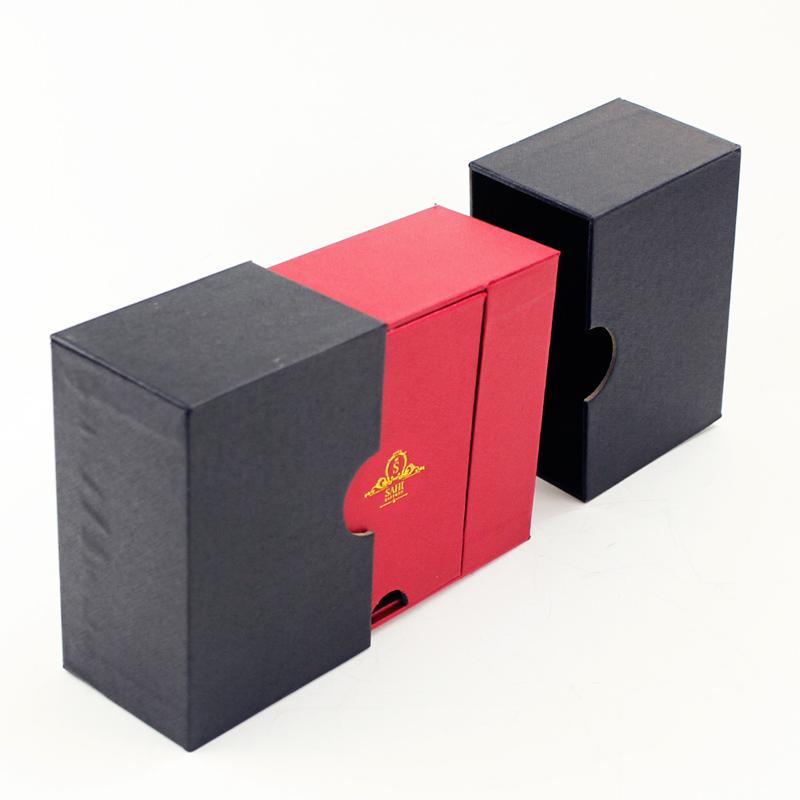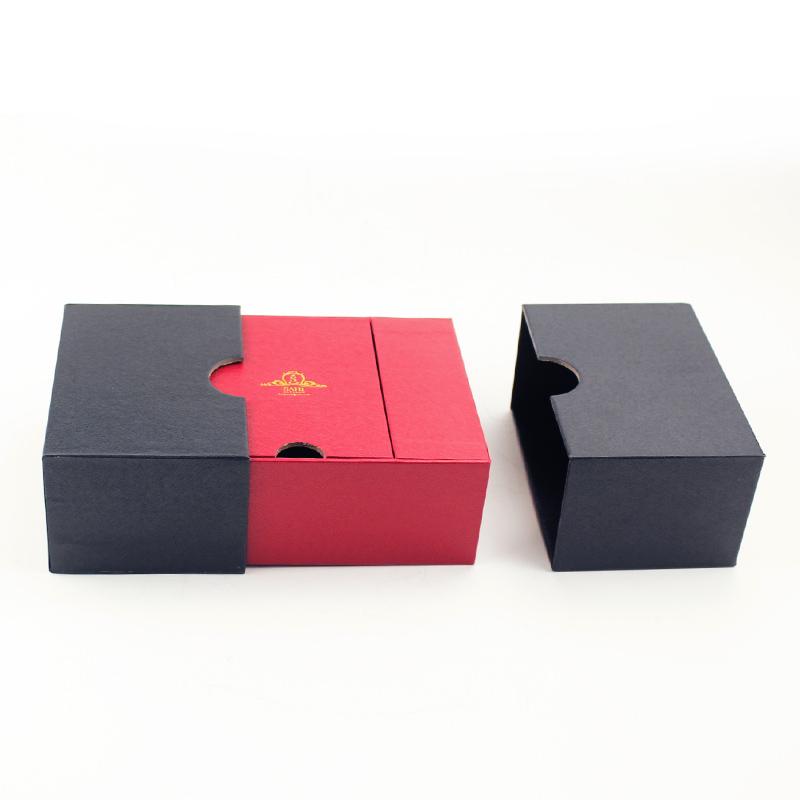 C'est un spécial unique conception boîte qui a fait par du papier de texture spéciale, l'extérieur de la couverture en noir classique et l'intérieur de la boîte en rouge chinois assorti, le logo sur le couvercle à rabat en feuille d'or estampée qui rend la boîte plus haut de gamme.