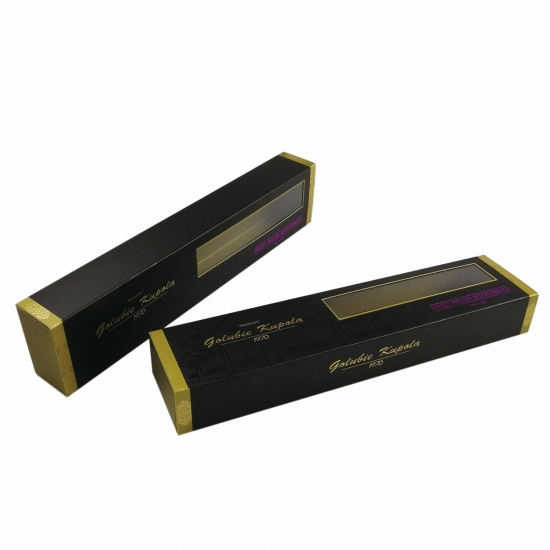 C'est un boîte à tiroirs coulissante pliable avec base dorée qui a fait par papier d'art C2S 157g + carton gris 1200g ,plein d'impression à l'extérieur et à l'intérieur de la boîte, il y a des inserts en carton papier qui ont une forme personnalisée en fonction des produits à l'intérieur de la boîte.