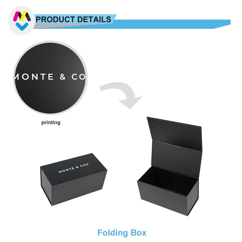 C'est une couleur verte boîte rigide noire avec couvercle à fermeture magnétique qui a fait par papier d'art C2S 157g + carton gris 1200g, impression couleur à l'extérieur et à l'intérieur de la boîte avec revêtement UV du logo.