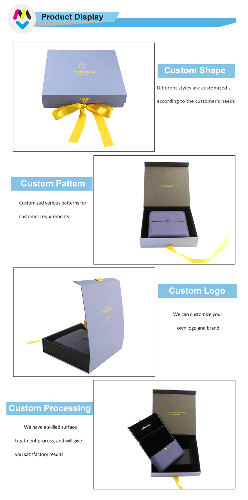 Remarque : Toutes ces photos de produits que nous avons publiées sur notre site Web sont uniquement à titre de référence sur le type d'emballage que nous pouvons fabriquer, cela ne signifie pas que nous vendons le même que le stock. Nous nous concentrons sur la personnalisation de toute taille/couleur d'impression/structure d'emballage en papier, etc.