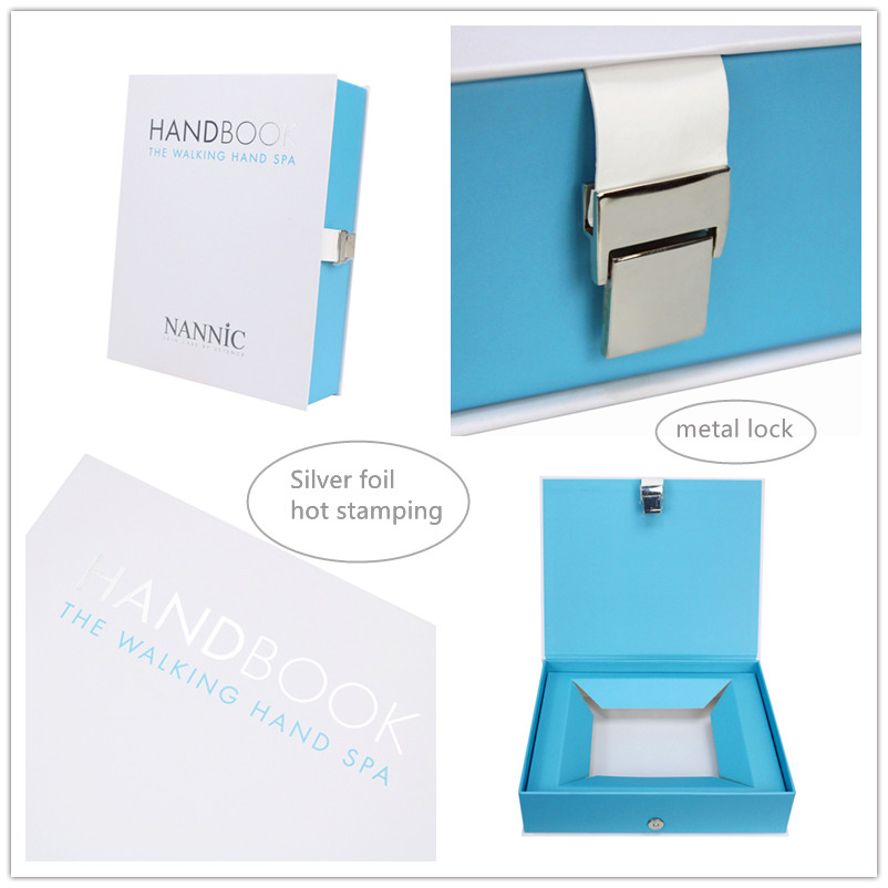 matériau de la boîte: Papier d'art C2S 157 g, carton double gris 1 200 g + verrou métallique
