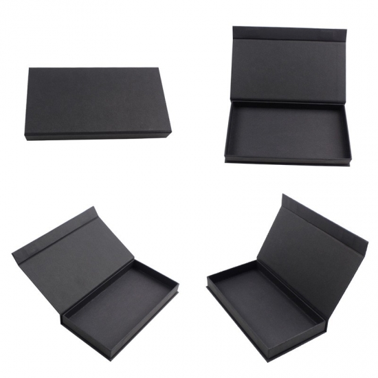 Petite boîte magnétique noire en forme de livre, idéale pour personnaliser vos logos, motifs imprimés, etc. Idéale pour l'emballage interne, elle est économique, écologique et réutilisable.