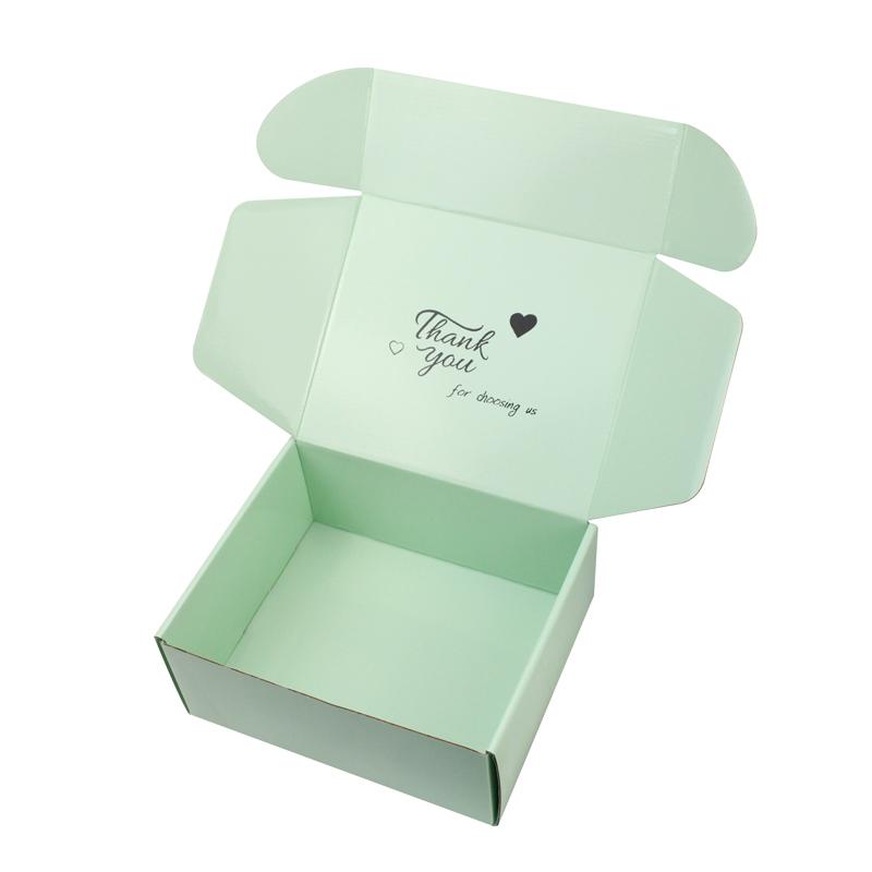 Boîte d'expédition en carton ondulé à cannelure E imprimée de couleur vert clair personnalisée