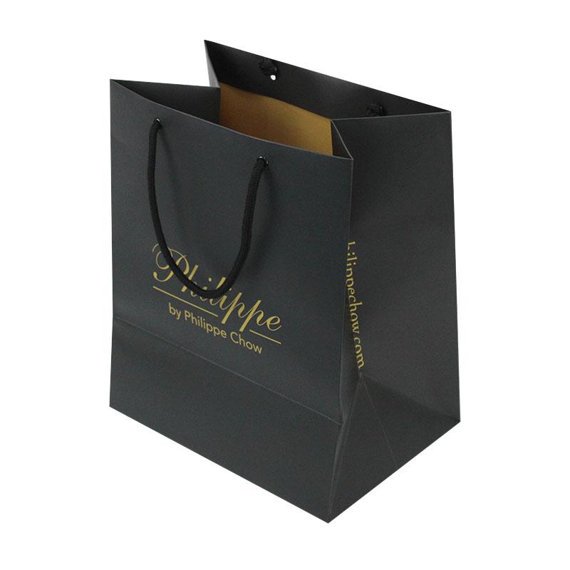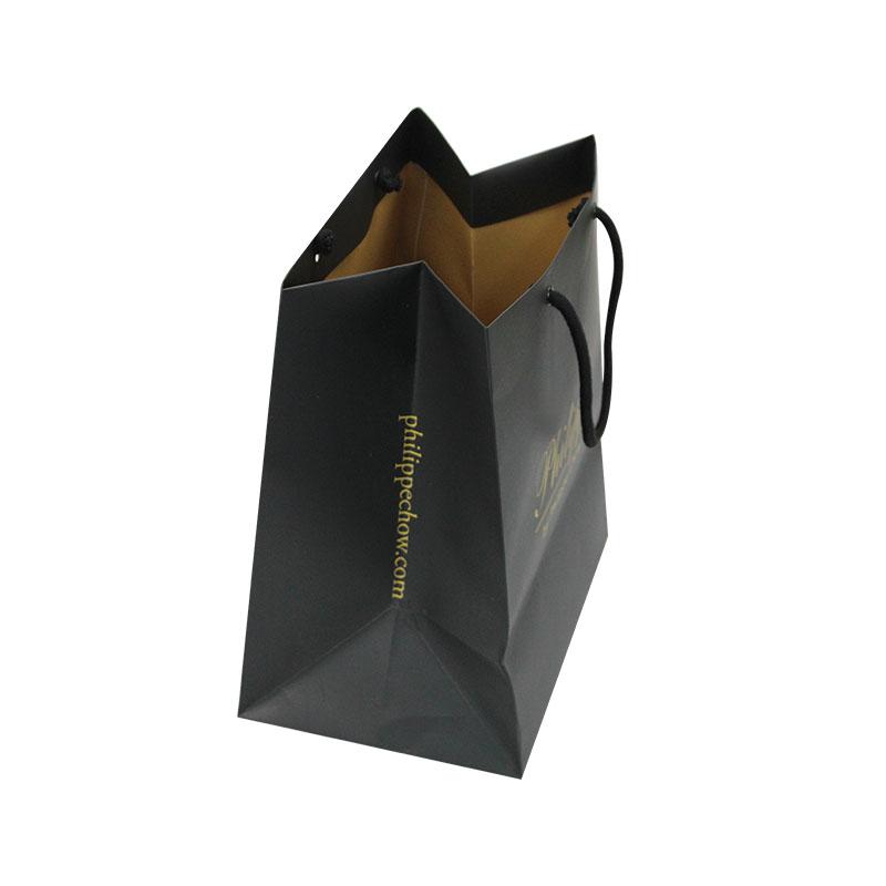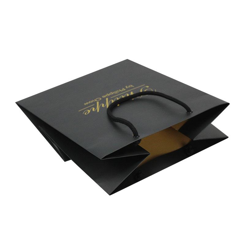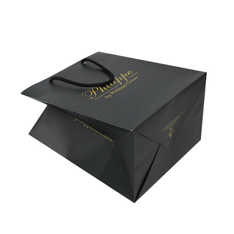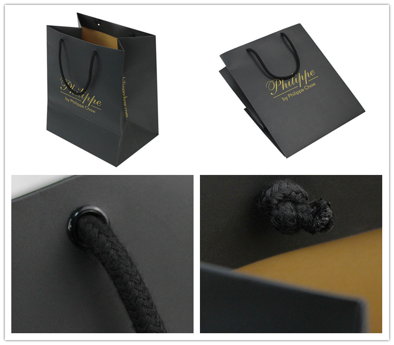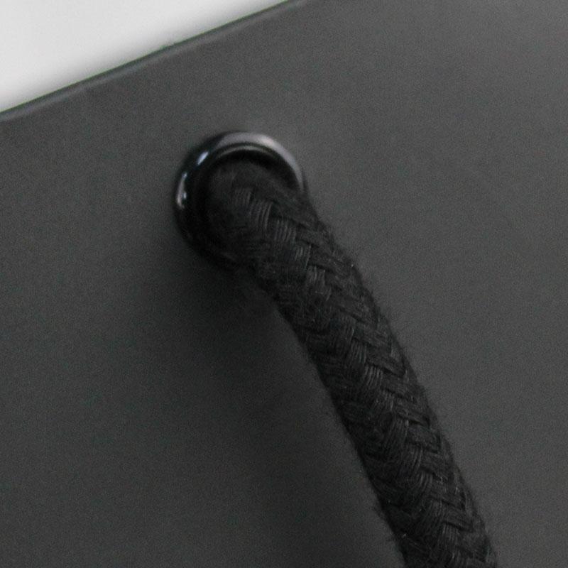 2. Matériau du sac : papier d'art C1S 250 g/m² + poignée en corde noire nouée + œillet noir