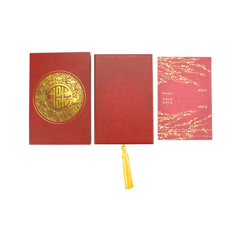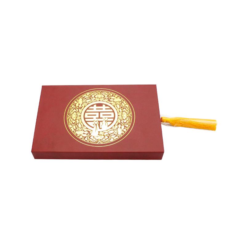 Boîte coulissante de haute qualité en gros en Chine, avec des éléments de conception de mariage chinois. En particulier, le ruban jaune peut être décoré et ouvert facilement