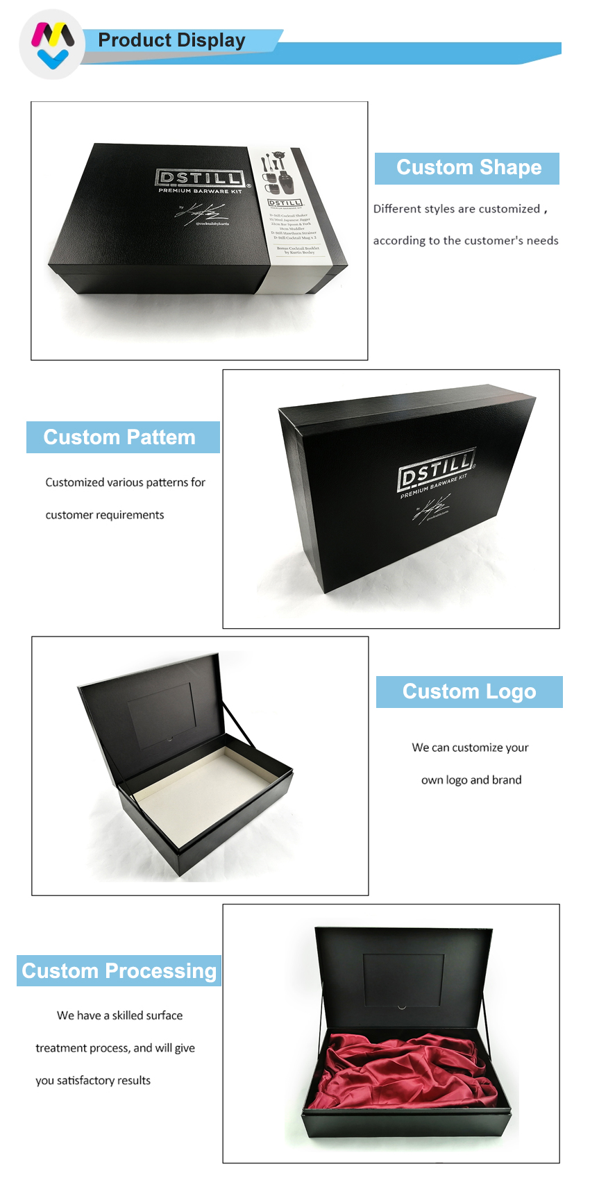 Remarque : Toutes ces photos de produits que nous avons publiées sur notre site Web sont uniquement à titre de référence sur le type d'emballage que nous pouvons fabriquer, cela ne signifie pas que nous vendons le même que le stock. Nous nous concentrons sur la personnalisation de toute taille/couleur d'impression/structure d'emballage en papier, etc.