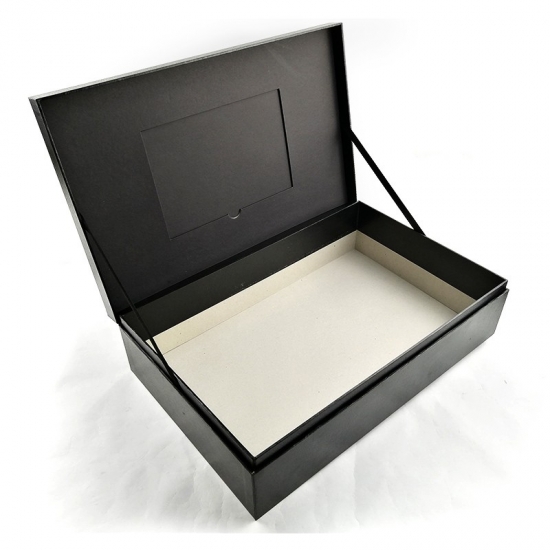 Specialty black paper with foil stamping book shape clamshell box