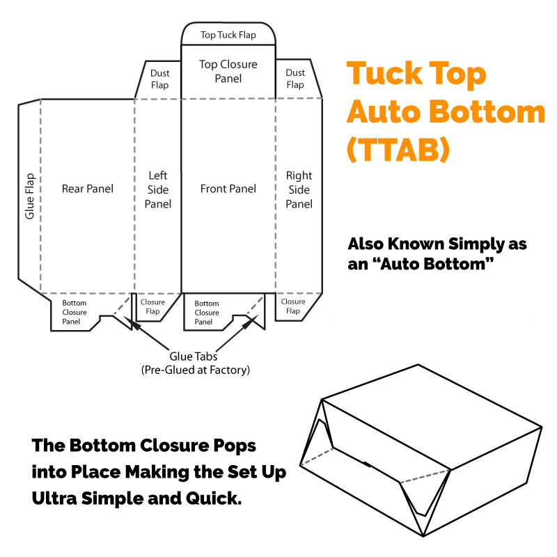 Boîtes à rabat complet avec fond à verrouillage automatique et impression personnalisée