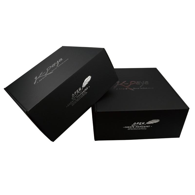 3) Finition de surface : impression graphique complète à l'extérieur avec logo estampage à chaud en feuille d'argent, laminage mat