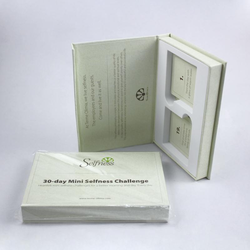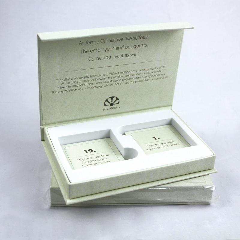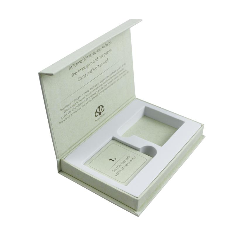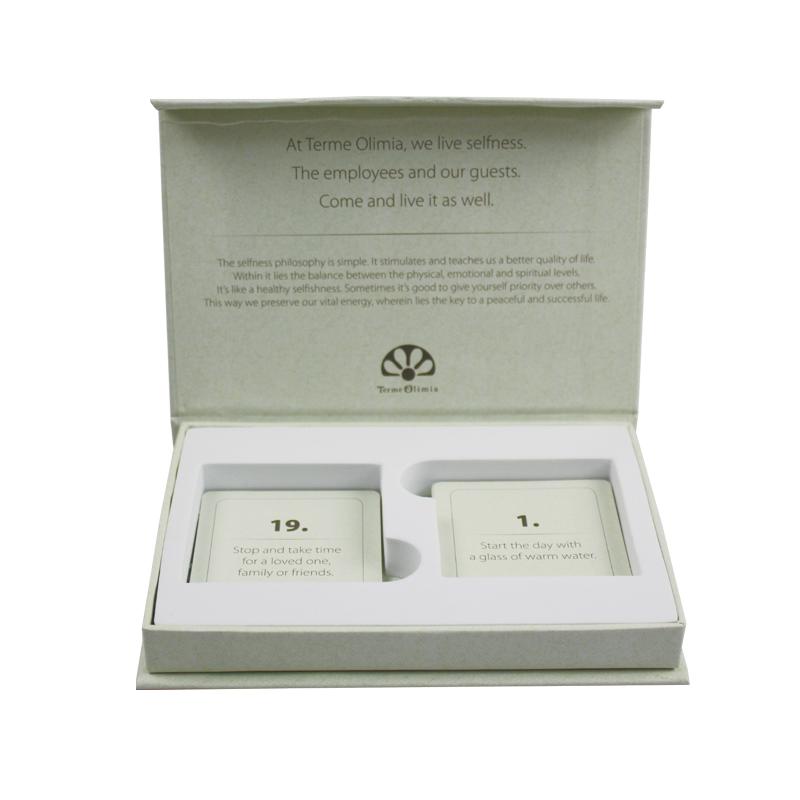 Il s'agit d'un petit coffret cadeau magnétique en forme de livre fabriqué à partir de papier d'art C2S 157 g + carton gris 1200 g, l'insert utilise une mousse EVA blanche dure et de bonne qualité qui maintiendra les petites cartes en place. Utilisation : tous types de produits et emballages cadeaux, parfums, bijoux, cosmétiques, vêtements, etc.