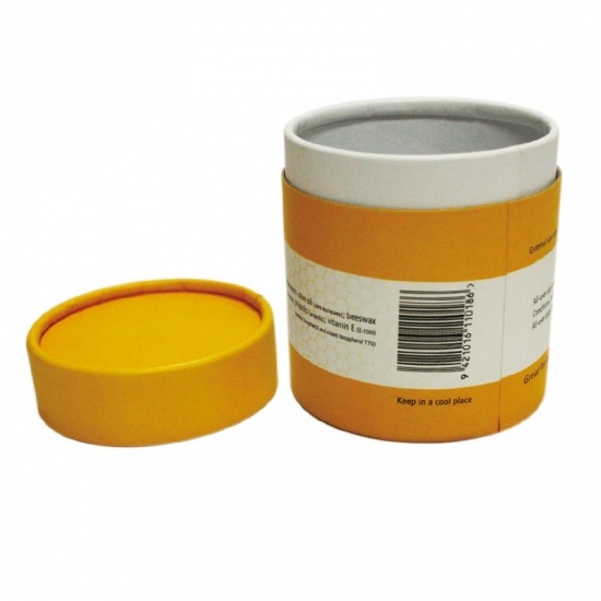 Coutume petit cylindre à bords recourbés boîtes d'emballage cadeau avec couvercles, impression extérieure de motifs graphiques complets.
