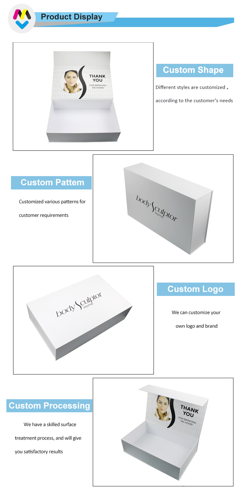 Remarque : Toutes ces photos de produits que nous avons publiées sur notre site Web sont uniquement à titre de référence sur le type d'emballage que nous pouvons fabriquer, cela ne signifie pas que nous vendons le même que le stock. Nous nous concentrons sur la personnalisation de toute taille/couleur d'impression/structure d'emballage en papier, etc.
