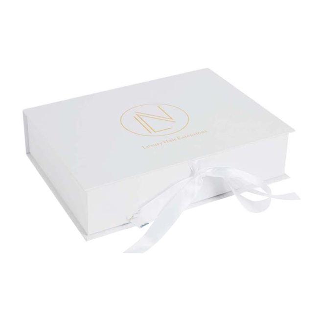 Coffrets cadeaux blancs avec ruban qui est un boîte cadeau pliable , Nous pouvons personnaliser les boîtes d'emballage cadeau dans différentes couleurs et tailles, dites-nous simplement les informations sur l'emballage de votre produit