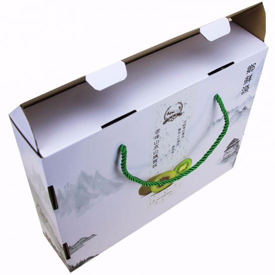 Emballage de fruits spécial personnalisé avec insert divisé en carton avec poignée en corde, boîte d'expédition en carton ondulé blanc.