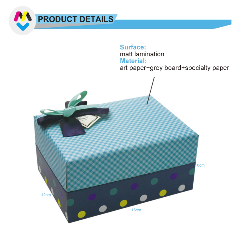Il s'agit d'une jolie boîte cadeau en forme de nœud papillon floral, fabriquée en papier d'art C2S 157 g + carton gris 1200 g, le couvercle est rembourré de coton, ce qui le rend plus confortable et doux au toucher, la boîte intérieure a un motif uni à carreaux.