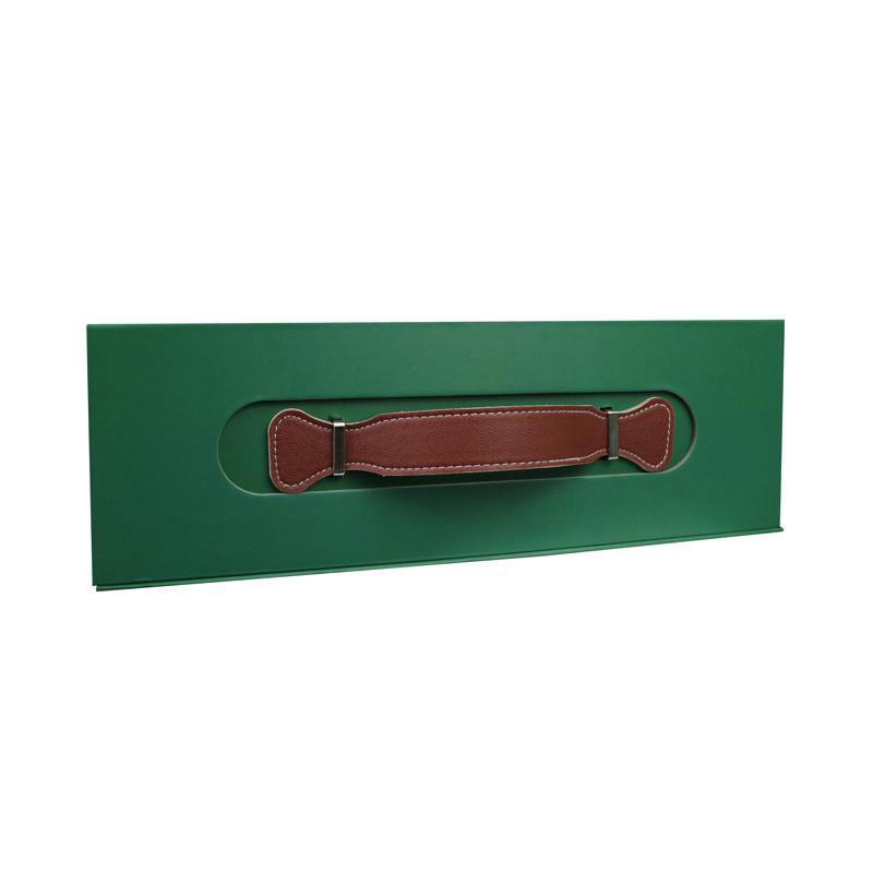 Boîte en papier élégante avec poignée, fabriquée en papier d'art imprimé quadrichromie CMJN 157 g/m², montée sur carton rigide de 2 mm. Avec sa poignée en cuir et son intérieur en satin doux, elle offrira un cadeau de Noël élégant à vos clients ou amis.