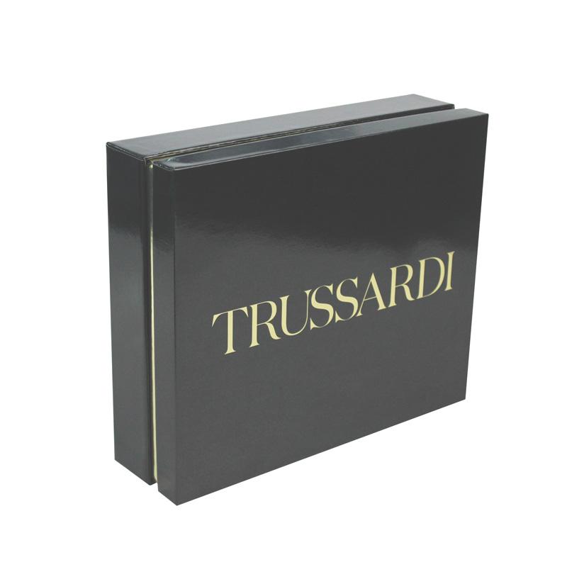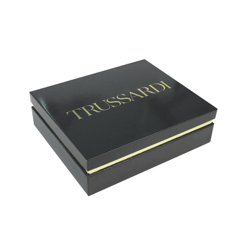 matériau de la boîte: Papier d'art 157 g/m² monté sur carton rigide 1200 g/m² avec papier doré métallisé sur la bordure