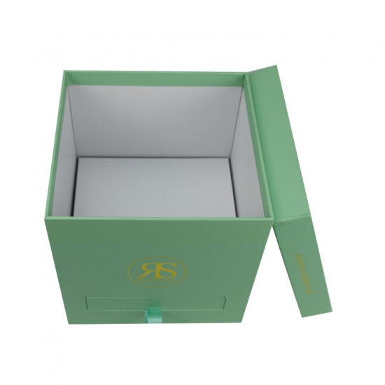 /Coffret cadeau carré vert avec tiroir à bijoux
