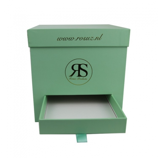 Boîtes à fleurs vertes personnalisées avec couvercles et insert de tiroir, adaptées à l'emballage de cadeaux de roses