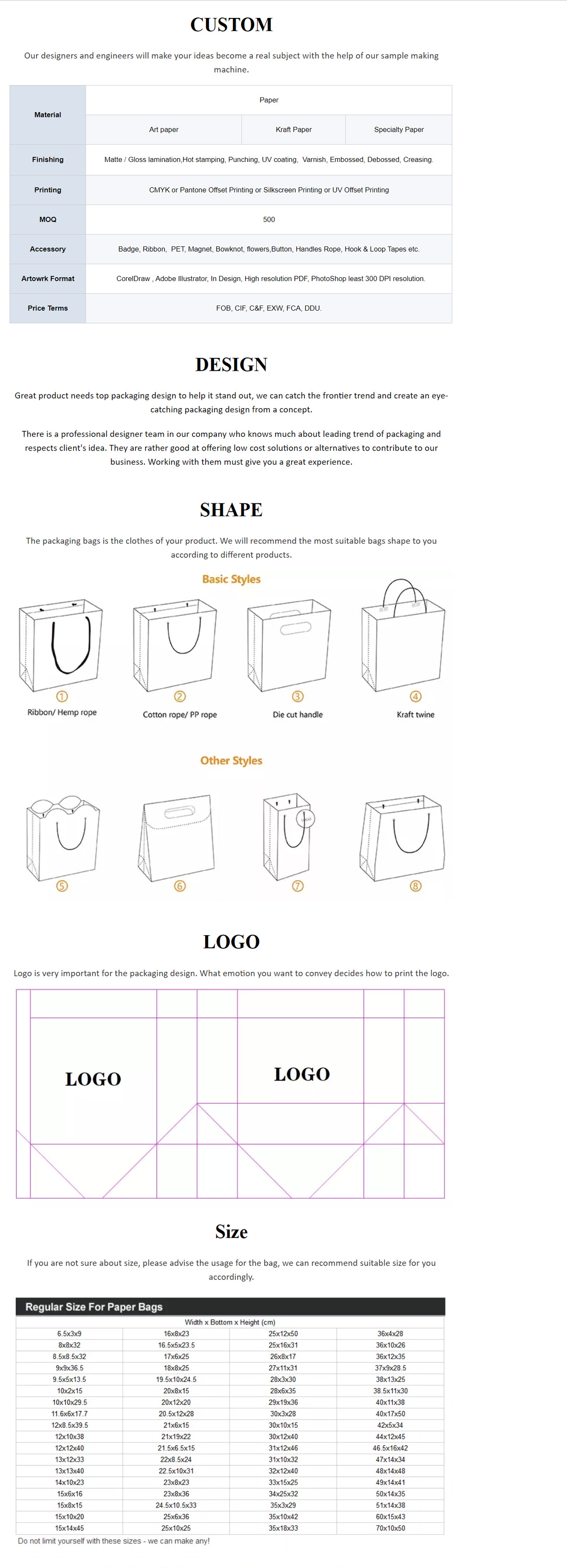Utilisation du sac : emballage cadeau pour courses, emballage cadeau promotionnel, emballage de vêtements/chaussures, etc.