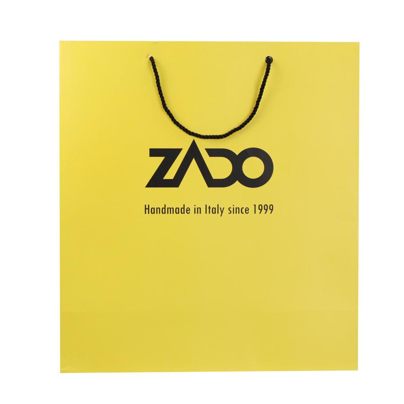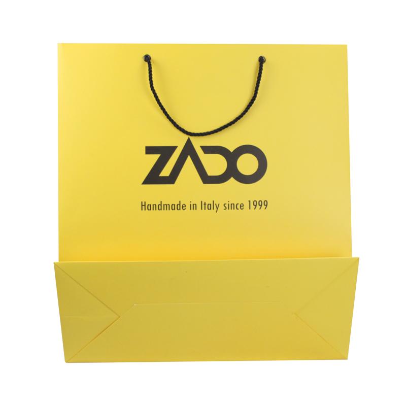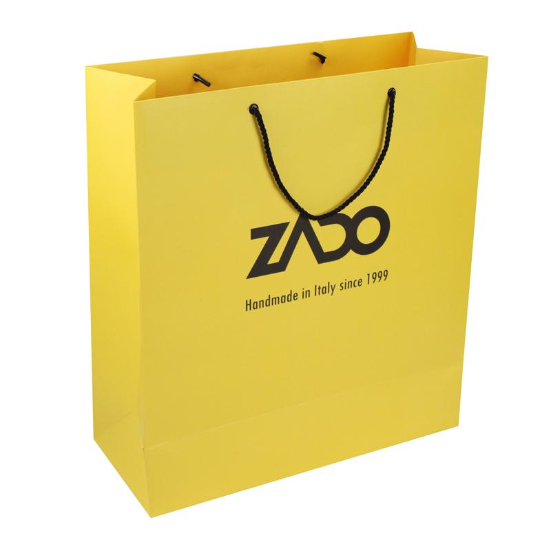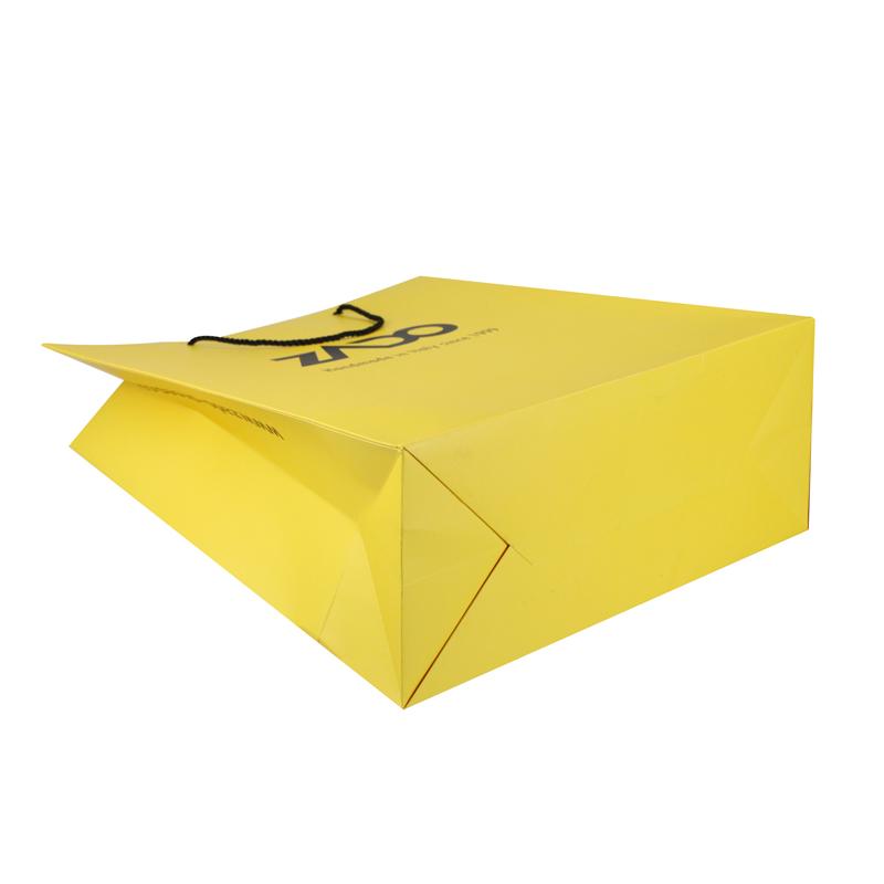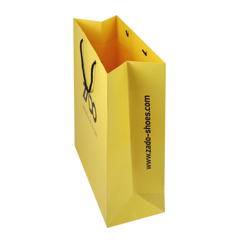 finition du sac : impression à l'encre jaune sur toute la surface, impression du logo en noir, laminage de film mat pour la protection de l'encre