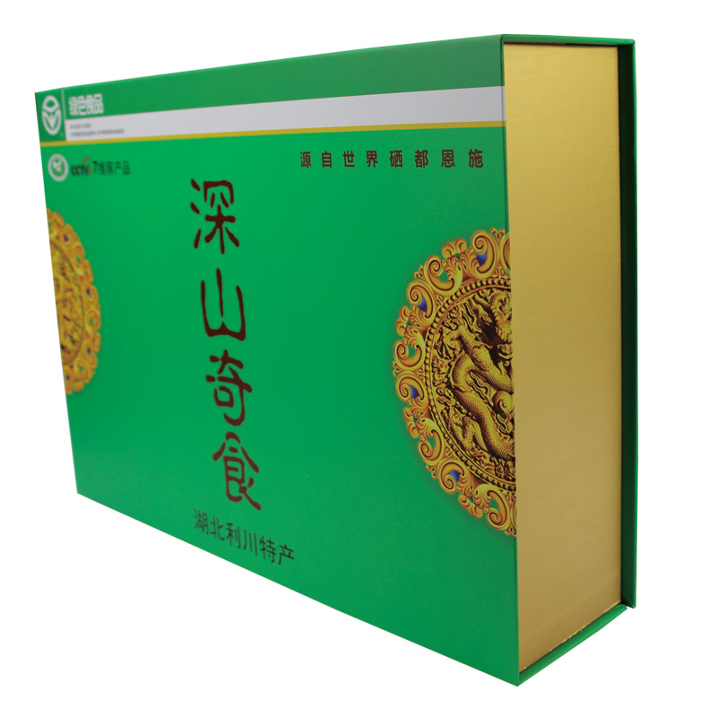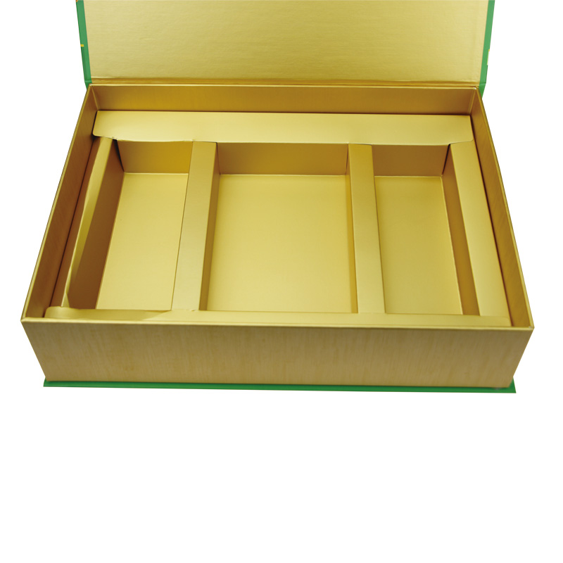 C'est un boîte magnétique en forme de livre qui a fait par papier spécial + carton gris de 2 mm, à l'extérieur de la boîte pleine d'impression personnalisée, le fond et le séparateur à l'intérieur de la boîte fabriqués avec du papier doré spécial qui peut avoir une forme personnalisée selon votre demande.