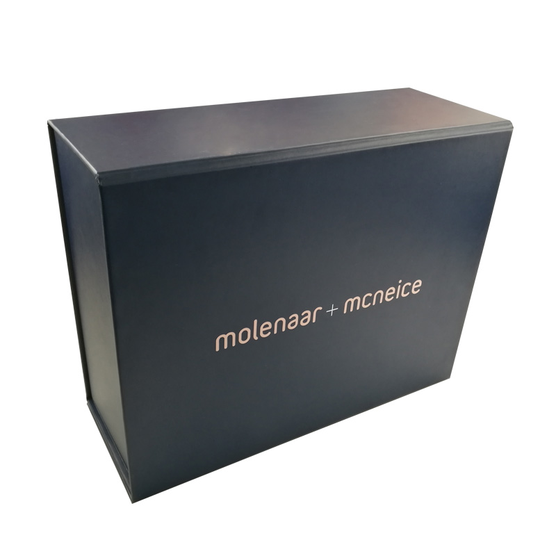 C'est un blanc boîte magnétique d'emballage bleu qui a fait par papier d'art C2S + carton gris de 4 mm, le logo à l'extérieur du couvercle est estampé en feuille rose, des rubans adhésifs doubles aux quatre coins. C'est une boîte en carton dur durable et robuste.