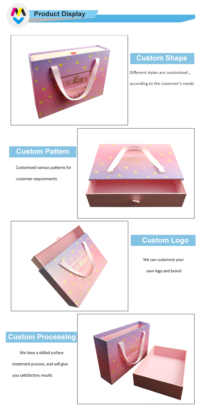 4) Utilisation : tous types de produits et emballages cadeaux, robe de mariée, parfum, bijoux, cosmétiques, vêtements, etc.