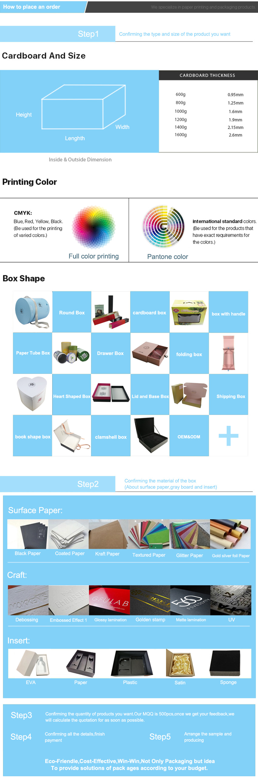 Basé sur la structure de la boîte, le matériau, la taille, la finition, la quantité et les conditions commerciales. |