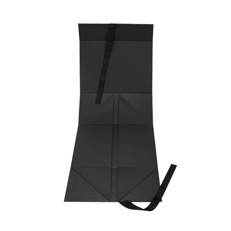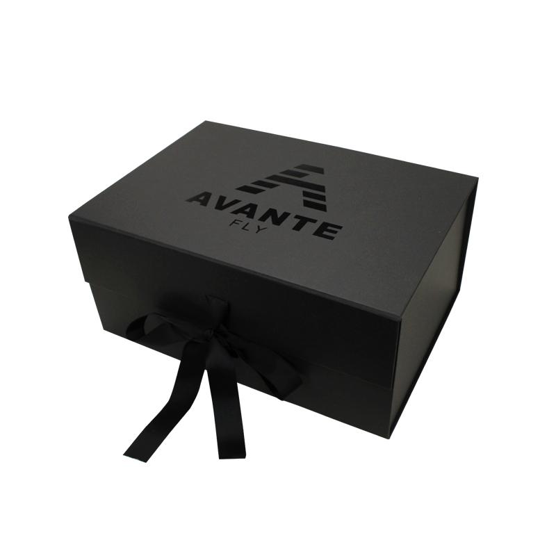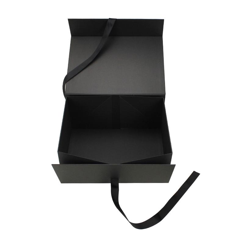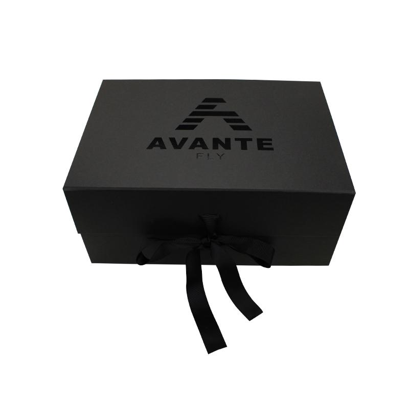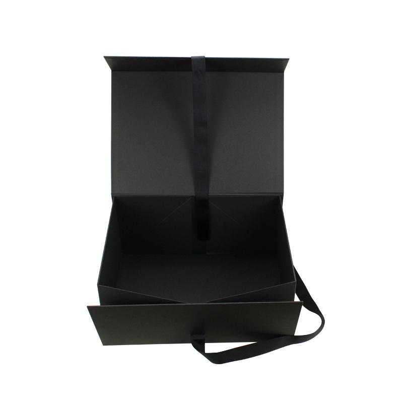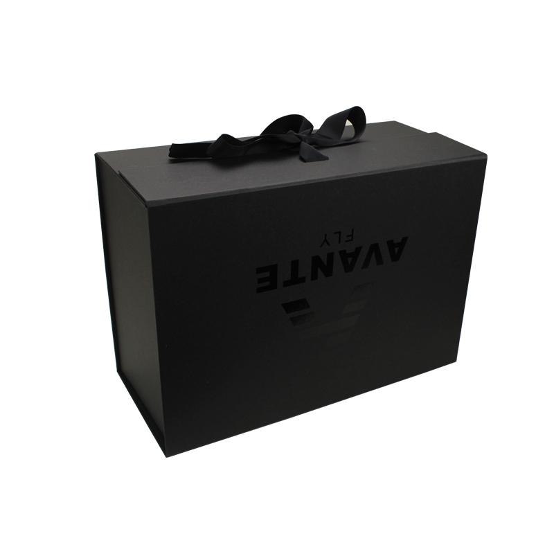 Guangzhou professionnel en gros personnalisé noir boîte cadeau pliante avec ruban 。