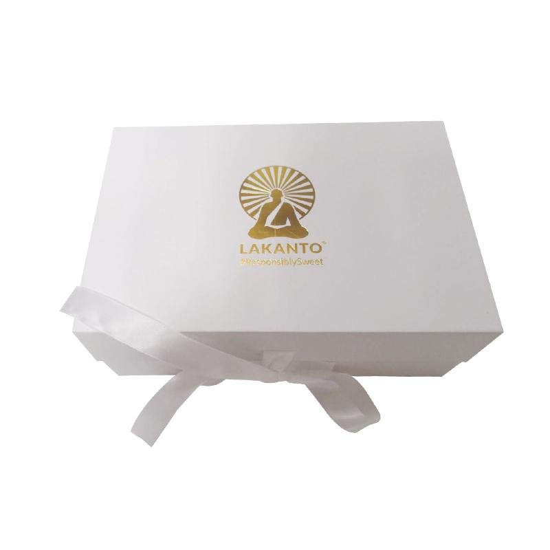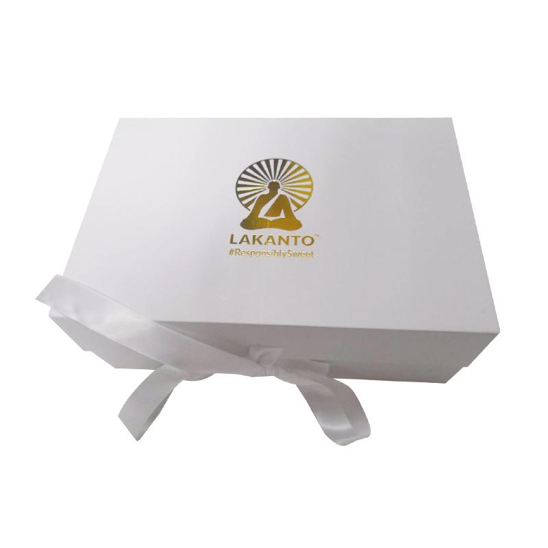 Coffret cadeau pliable de luxe avec ruban blanc, boîtes blanches pour cosmétiques