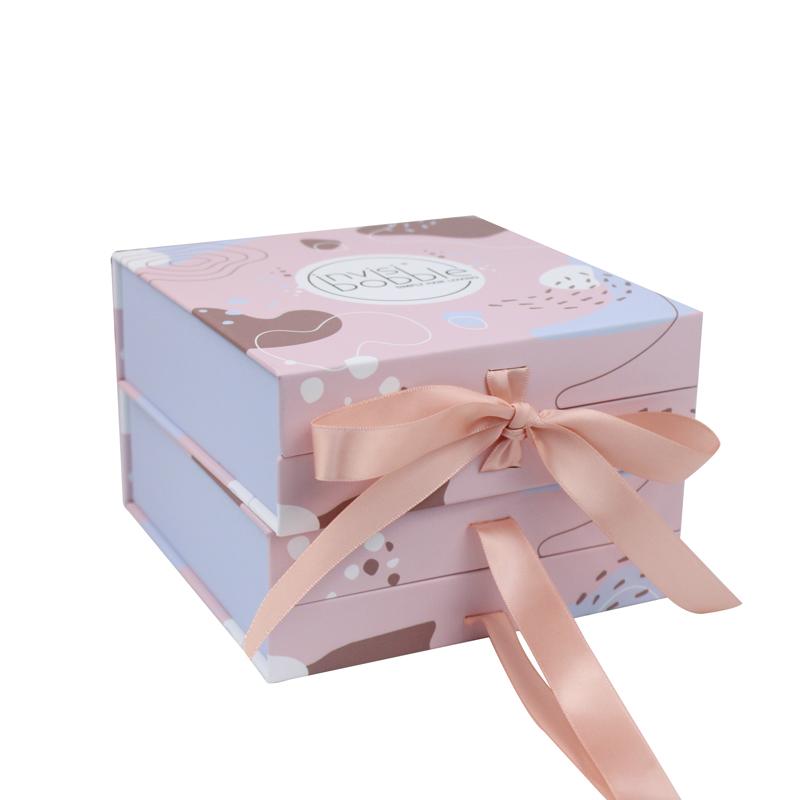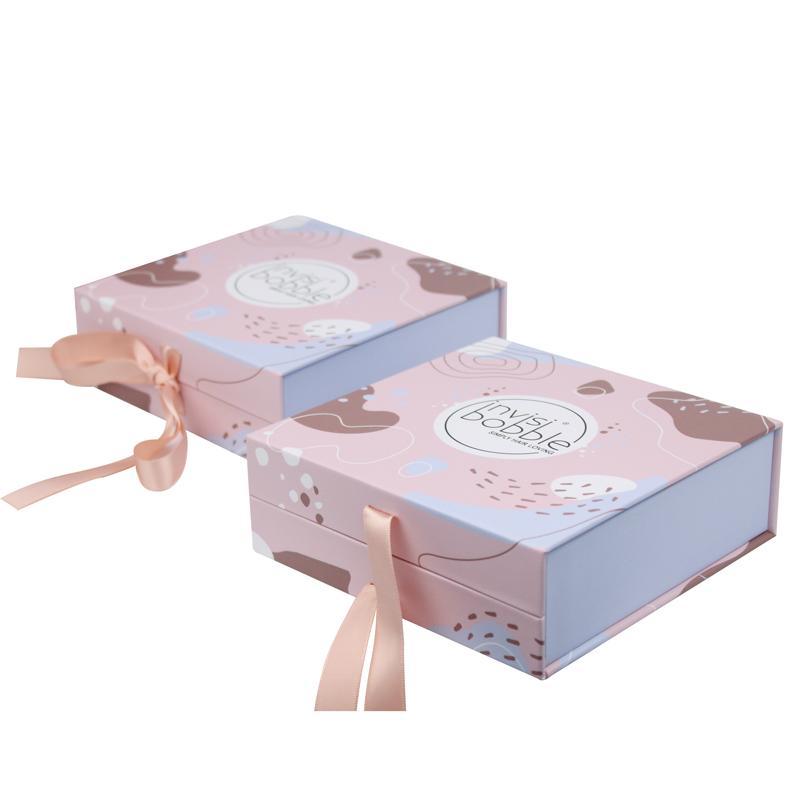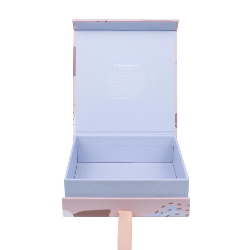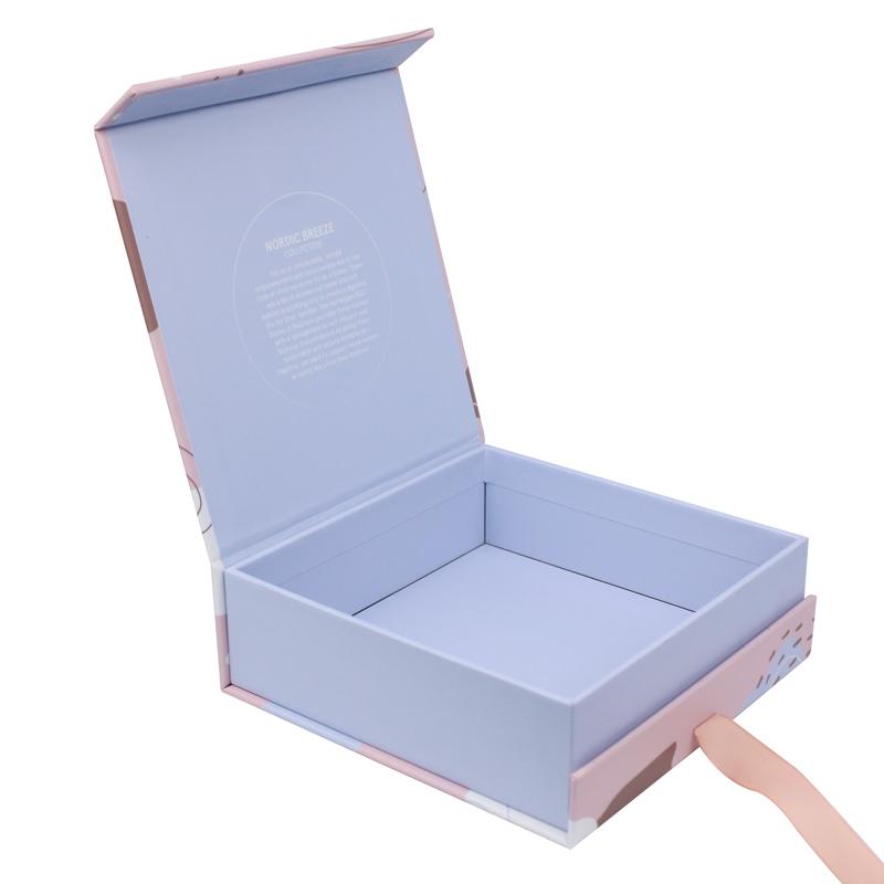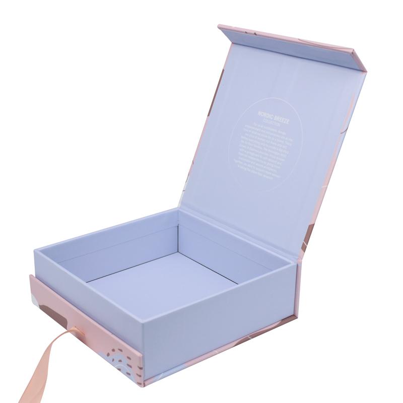Normally 7-10 days after design/sample cBoîtes imprimées de luxe de couleur rose bleu avec ruban
