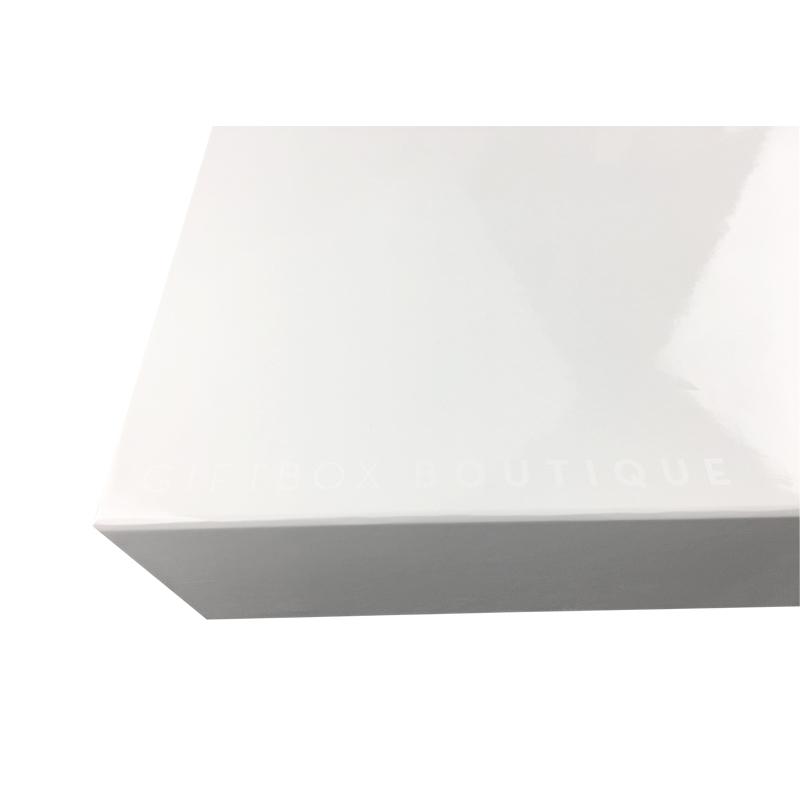 C'est un grand boîtes blanches en kit avec un pelliculage brillant. Convient pour la boîte pliante blanche pour l'emballage du sac à main