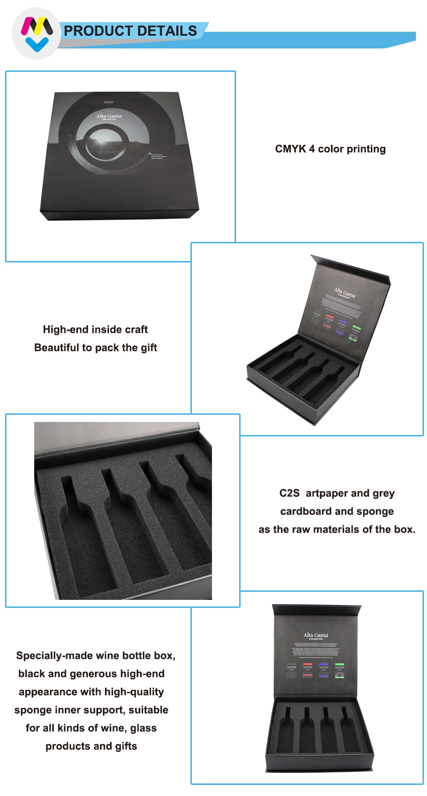 Boîte magnétique noire en forme de livre pour l'emballage du vin rouge
