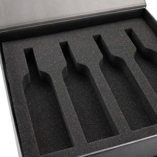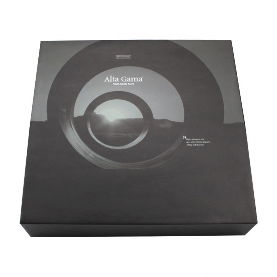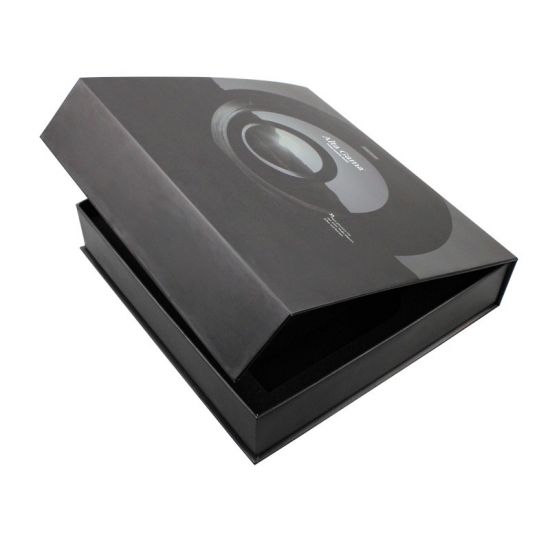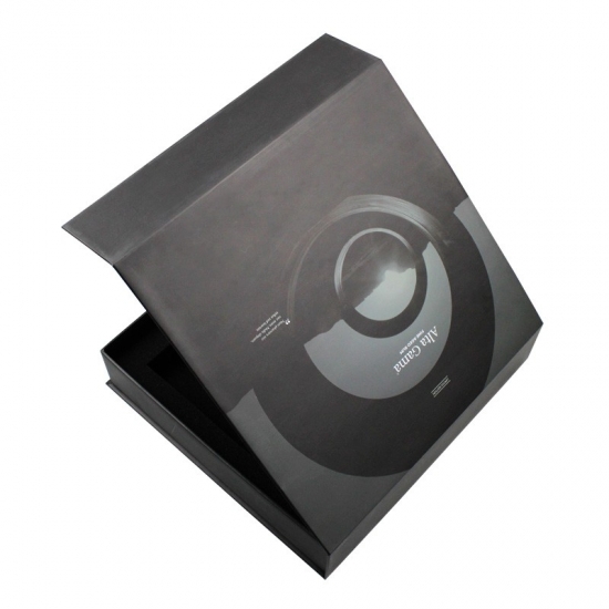 La boîte magnétique noire a été fabriquée à partir de papier d'art C2S 157 g/m² laminé avec 2
