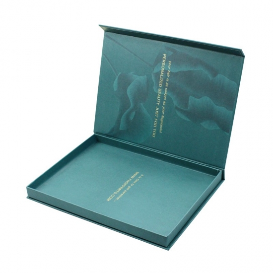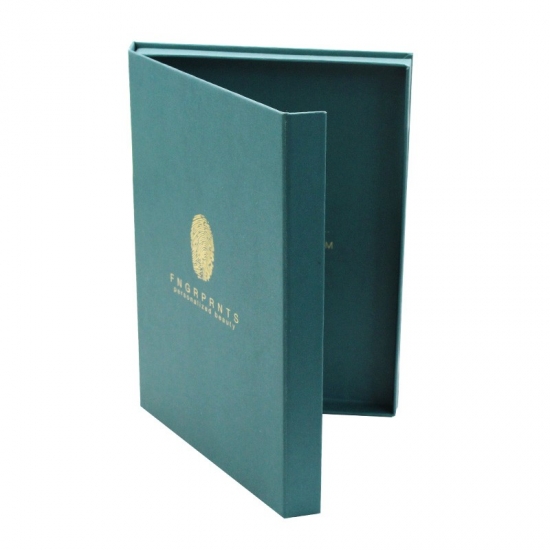 Il s'agit d'un fournisseur de boîtes cadeaux magnétiques qui a fait en papier d'art C2S 157 g + carton gris 1 200 g, le logo d'empreinte digitale sur le dessus du couvercle est estampé en feuille d'or.