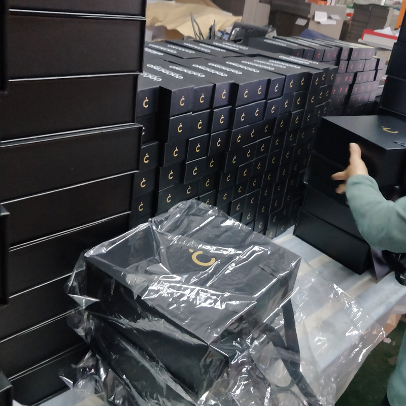 Conformément à ses exigences, nous utiliserons un logo estampé et gaufré à la feuille d'or, afin de le rendre plus éclatant et d'impressionner nos clients. Une fois le modèle de boîte cadeau magnétique finalisé, nous commencerons à transformer le design abstrait en produit concret. Après avoir vu nos échantillons, elle a été satisfaite de la qualité de l'emballage et a confirmé la commande rapidement avant de lancer la production.