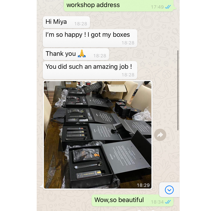 Mme Hall , un client d'Australie , possède sa propre marque indépendante. C'est un grand honneur de la rencontrer sur notre site web. Après avoir appris qu'elle s'apprête à lancer un nouveau projet de gamme de café, elle recherche une marque haut de gamme. coffret cadeau magnétique et un impressionnant boîtes cadeaux magnétiques avec ruban