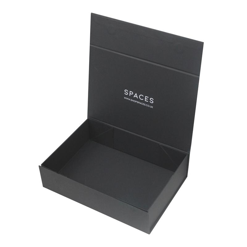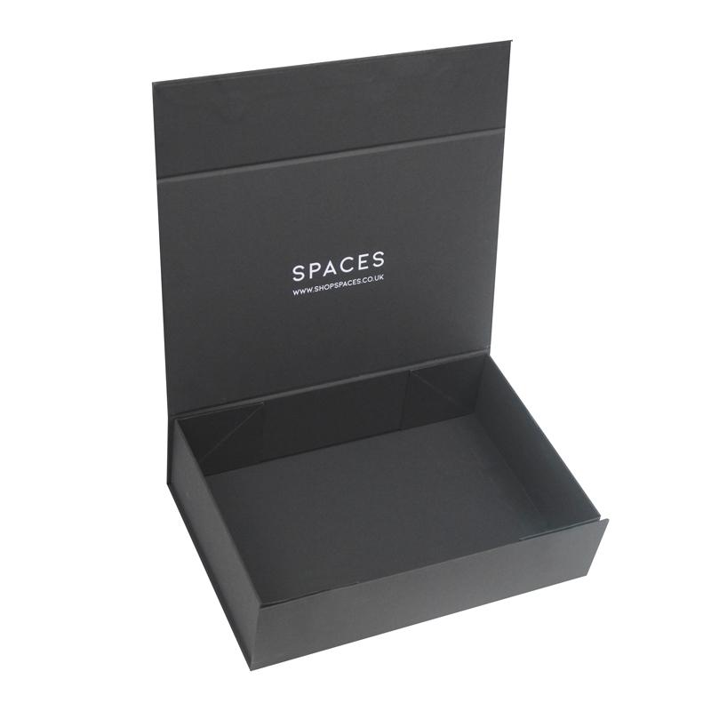 Boîtes noires personnalisées avec logo blanc et couvercles magnétiques pliables