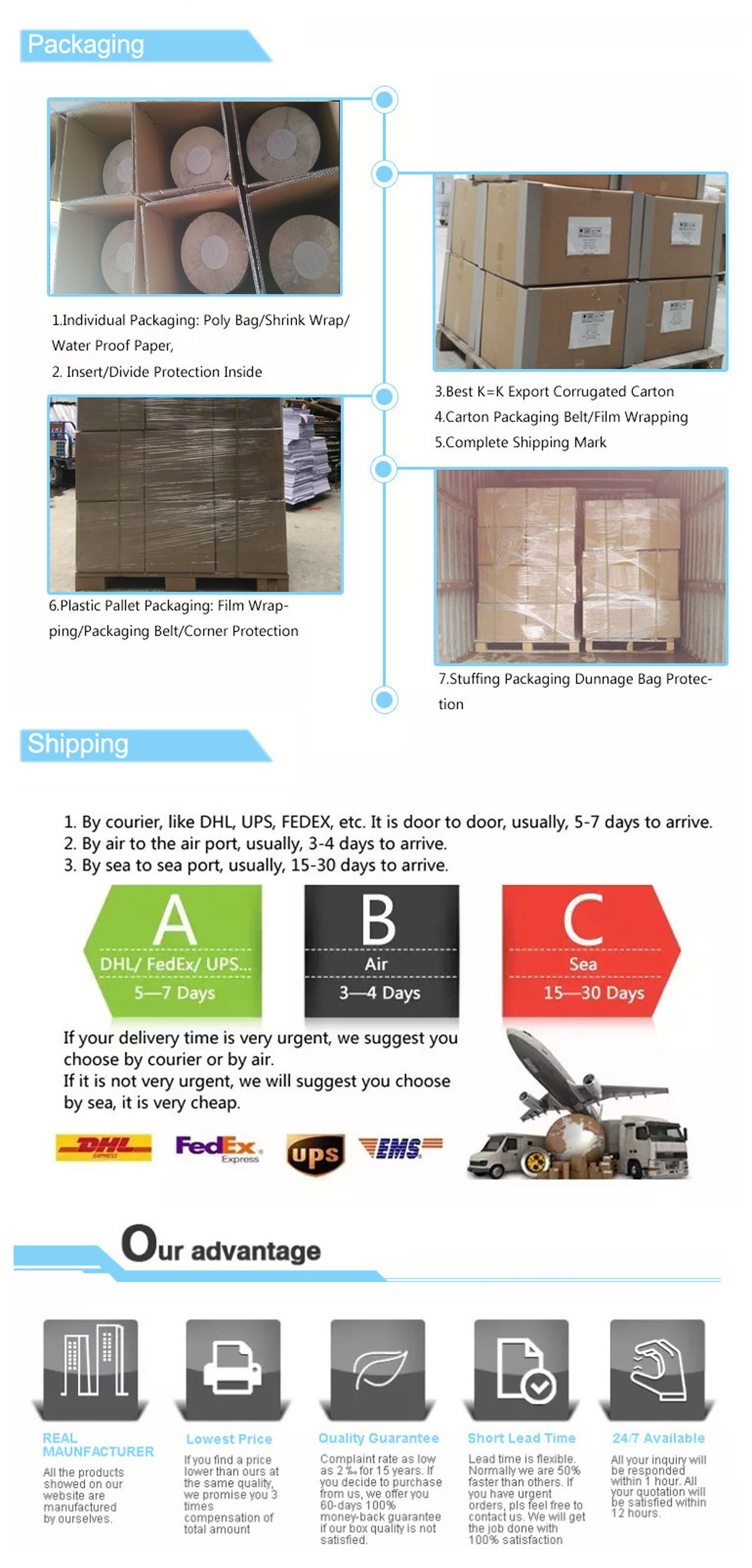 Papier couché adhésif, papier kraft, papier sans bois, vinyle, film transparent comme BOPP, PP, PVC, PET, etc. |