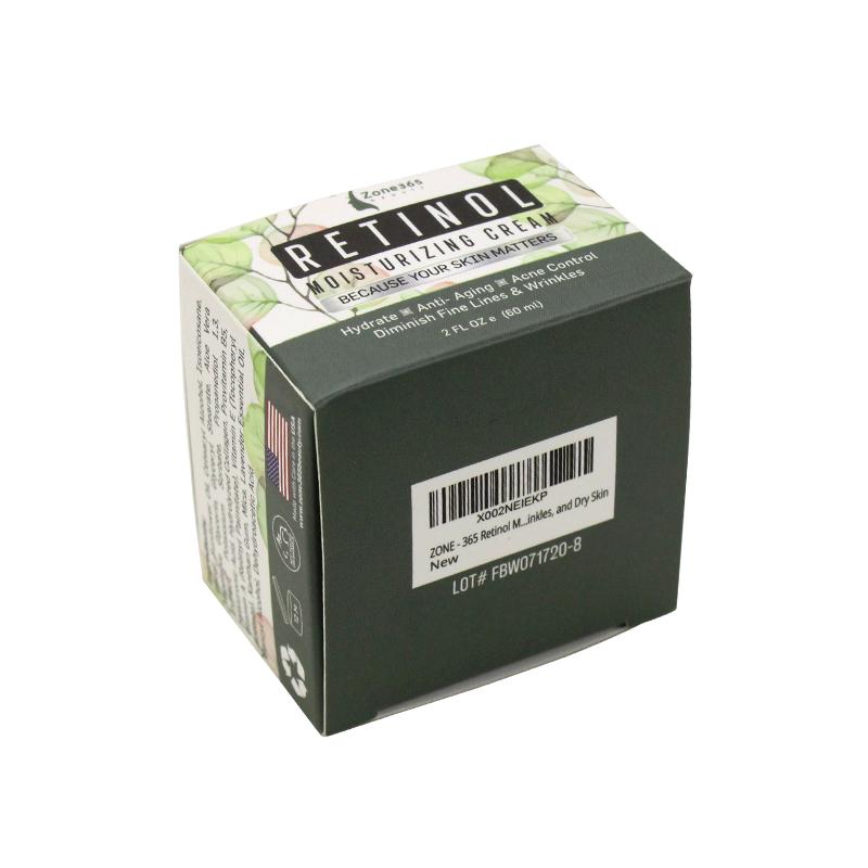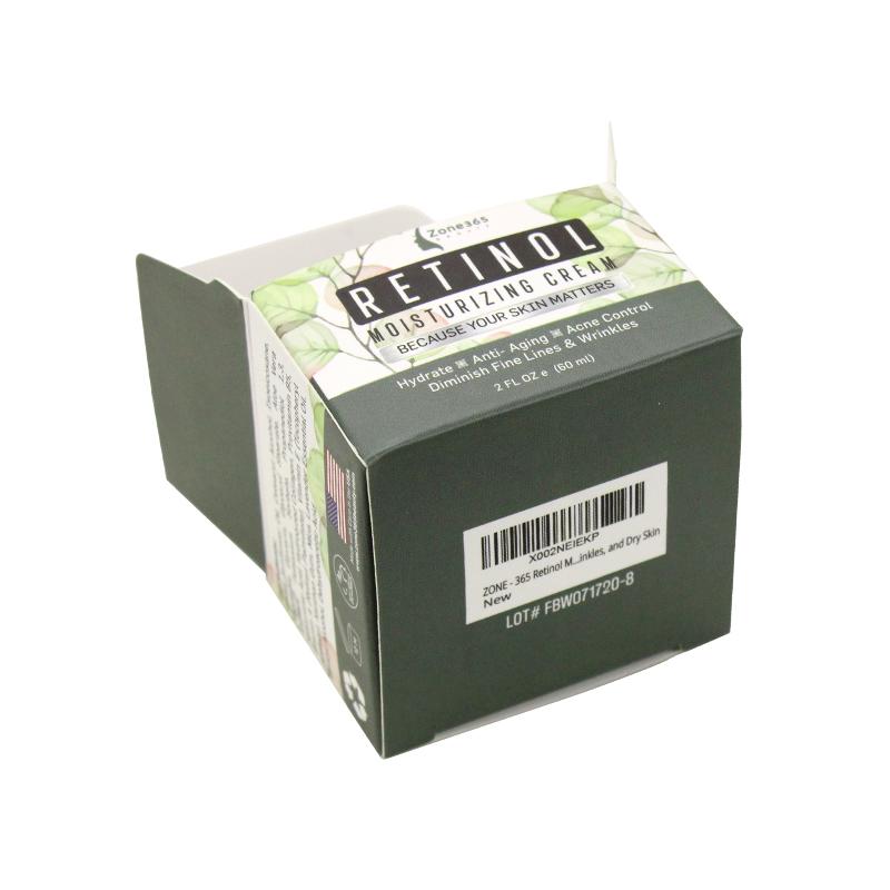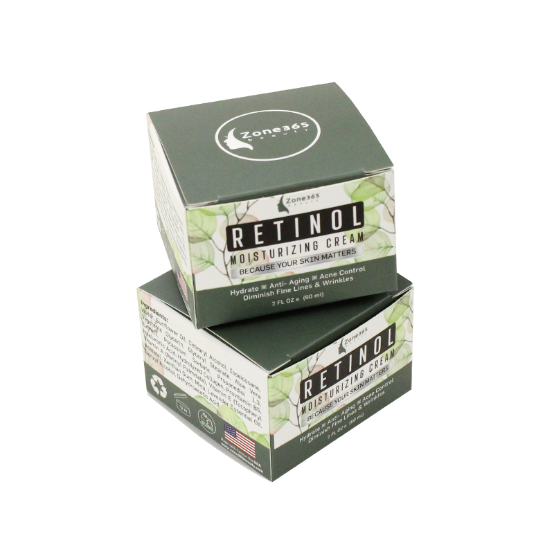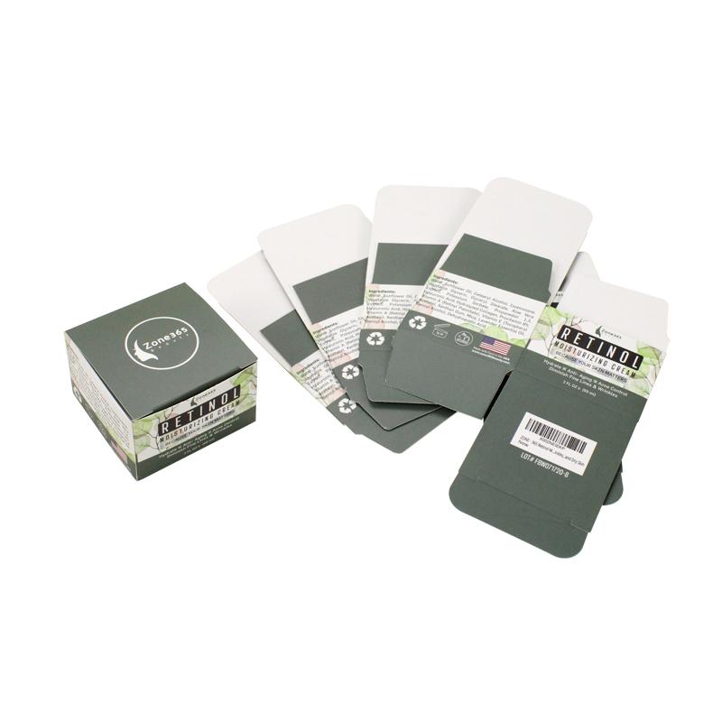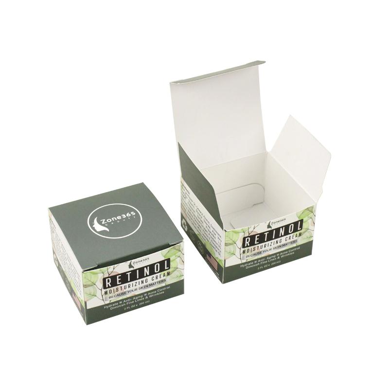 C'est un boîte en carton souple pour cosmétiques qui a fait par papier d'art couché 350 g/m² une face, à l'extérieur de la boîte pleine de texte et d'impression de logo comprenant des instructions et un code-barres, à l'intérieur blanc vierge sans aucune impression.