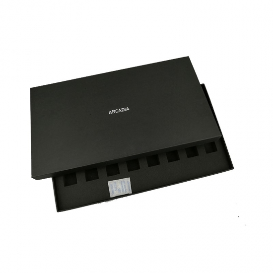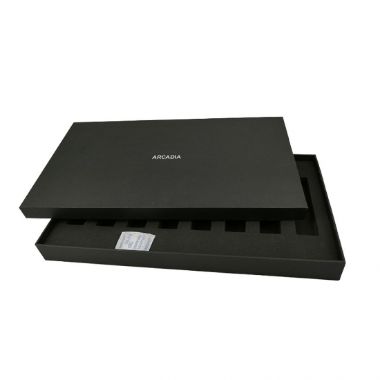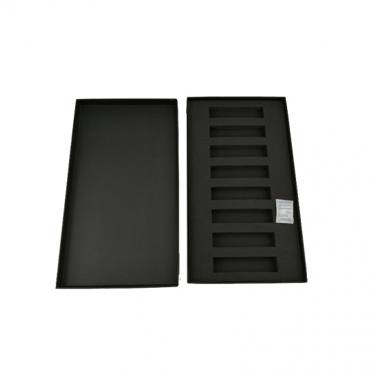 Cette boîte est fabriquée en carton noir 120 g/m² laminé avec du carton rigide premium 1200 g/m². Son design est simple et épuré, avec seulement le logo de l'entreprise imprimé à chaud, mais elle n'en reste pas moins élégante. Sobre et luxueuse, elle est appréciée des Européens et des Américains.